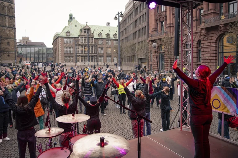 Ansteckend! Befreiend! Verbindend! Die etwa 300 Menschen tanzten mehrfach ihren Protest gegen Gewalt an Frauen, Mädchen, FLINTA* und ihre Forderung nach Respekt, Selbstbestimmung und Gerechtigkeit.
